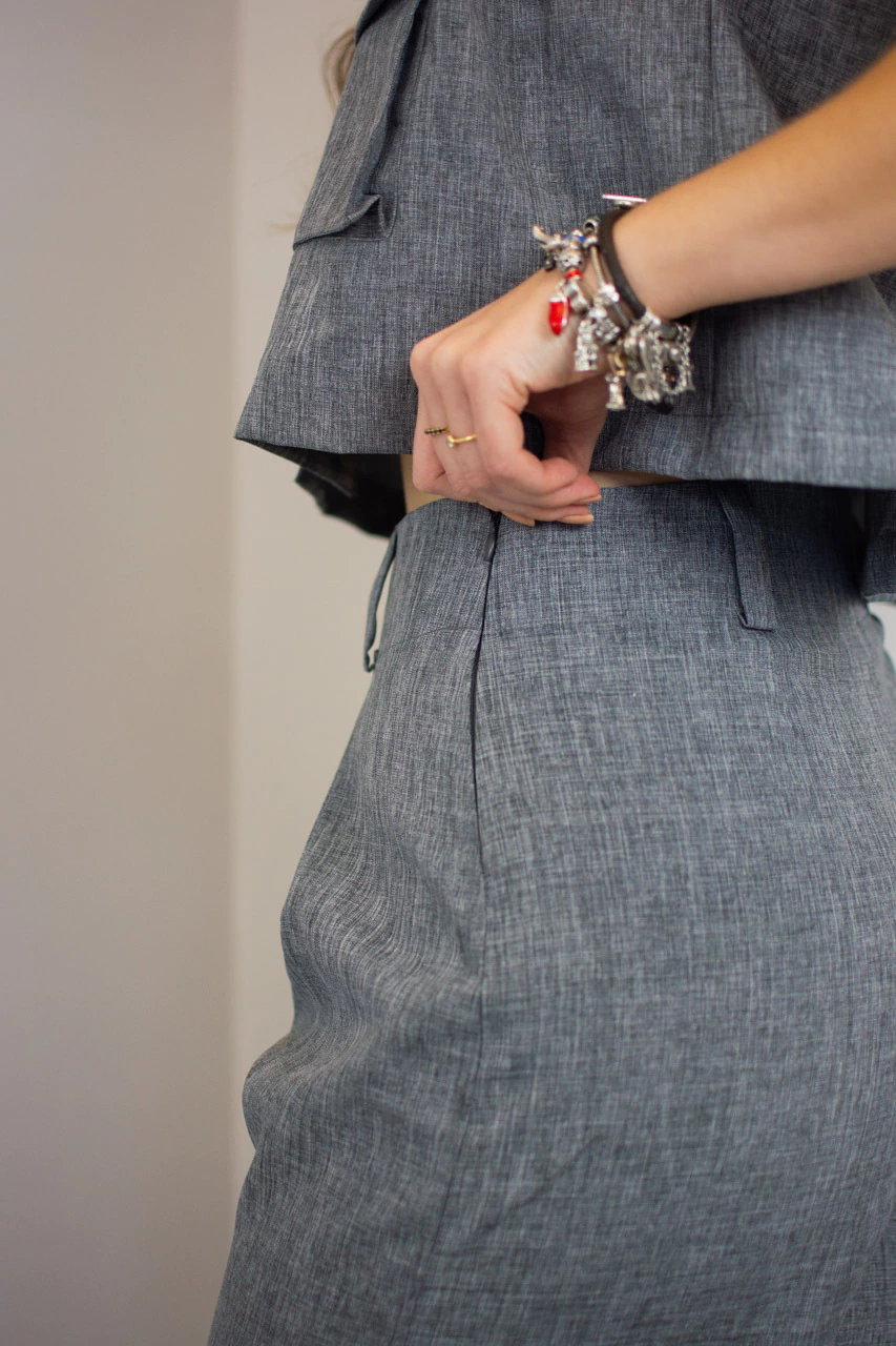 A Calça Pantalona Cinza Escuro com Pregas é a escolha perfeita para um visual sofisticado e moderno. Com cintura alta e modelagem ampla, proporciona conforto e elegância. O detalhe das pregas frontais realça o caimento, enquanto o zíper lateral oferece praticidade. Ideal para combinar com blusas justas ou camisas fluídas, garantindo um look versátil e refinado para diversas ocasiões.