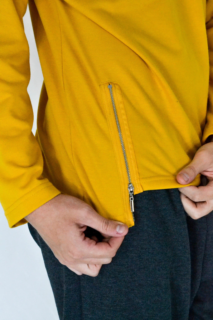 Um moletinho para um dia não tão frio é indispensável, além de ser bem estiloso e confortável! Por isso desenvolvemos essa peça unissex mostarda com zíper nas laterais frontais aparente, para deixar ele mais despojado, moderno e atemporal. Seu tecido foi escolhido a dedo por ser feito com algodão certificado BCI de poliéster reciclado de garrafa pet, deixando sua peça ainda mais confortável e sustentável!
