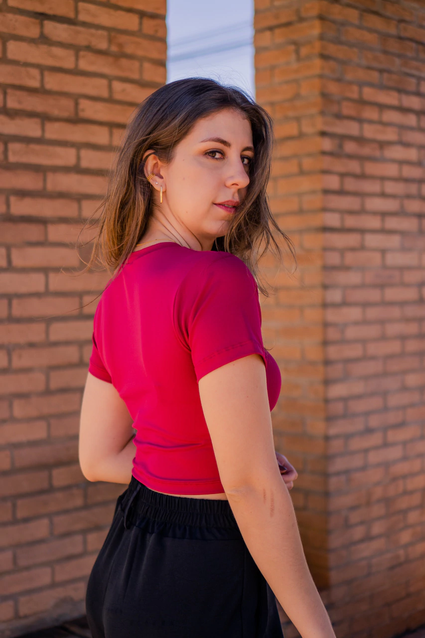 Descubra o charme do nosso cropped manga curta, elaborado em poliamida de alta qualidade. O tecido elástico oferece um caimento perfeito, que se ajusta ao corpo sem perder a forma, garantindo liberdade de movimento e conforto o dia todo.