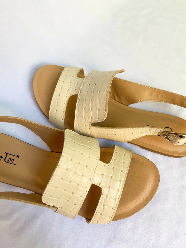 Rasteira Off White A Rasteira Off White é a escolha ideal para adicionar um toque de elegância e conforto ao seu visual. Feita com couro trabalhado que se assemelha a um trançado, essa rasteira oferece estabilidade e ajuste perfeito aos pés. Seu design abraça o pé, proporcionando segurança e estilo. O material de alta qualidade garante durabilidade e conforto incomparável. Com a rasteira off white você desfrutará de um calçado que une beleza, qualidade e conforto em cada passo. Não deixe de presentear alguém especial ou a si mesma com essa peça única que combina perfeitamente com diversos looks. Aproveite agora mesmo toda a sofisticação e exclusividade que só a Mari Telli pode oferecer!