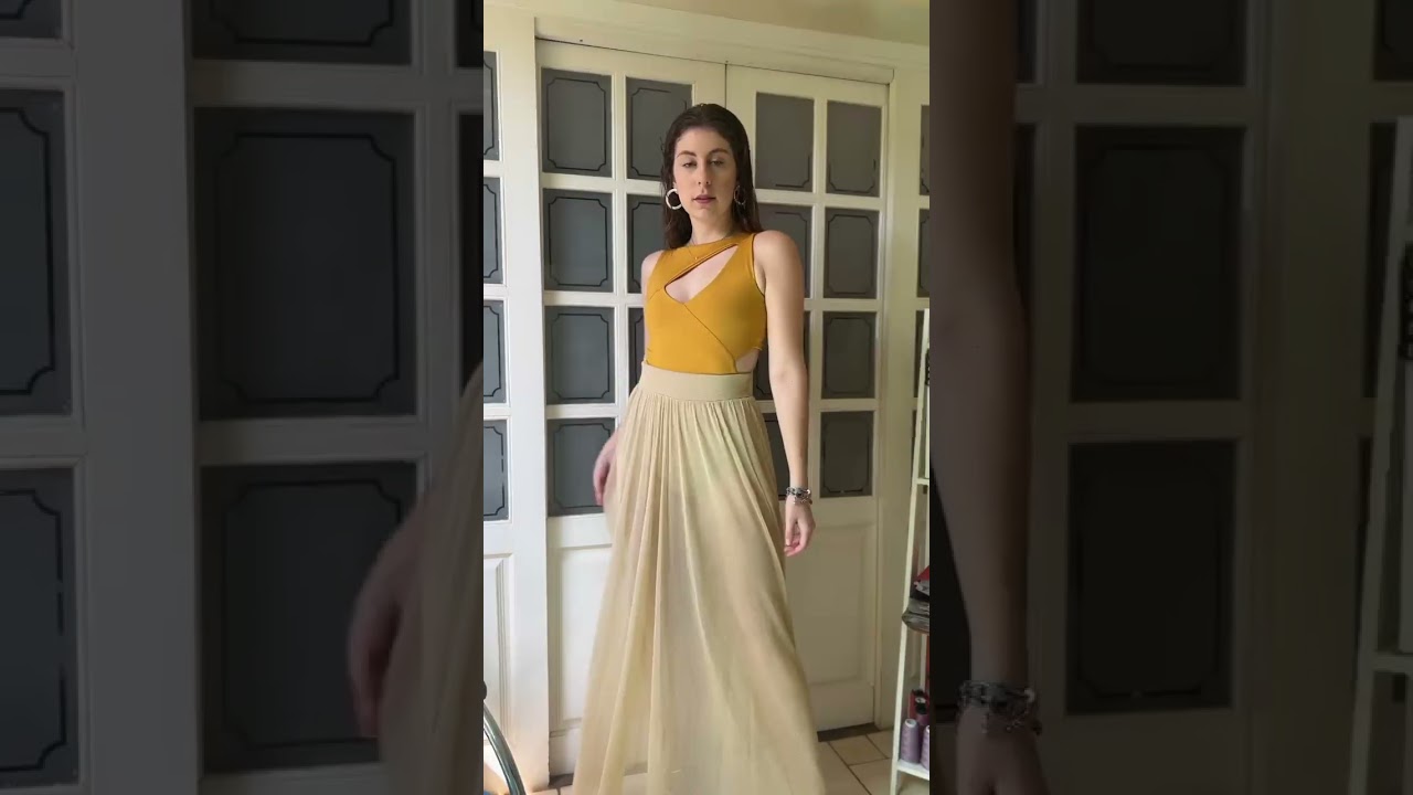 A saia de tule lurex dourada tem um brilho perfeito que traz um charme, mas também fica discreto dependendo da proposta do look. Com cós largo e alto com elástico, corte em godê e comprimento longo, permite a combinação com camisetas, tops, cropped, bodies, o que você quiser!