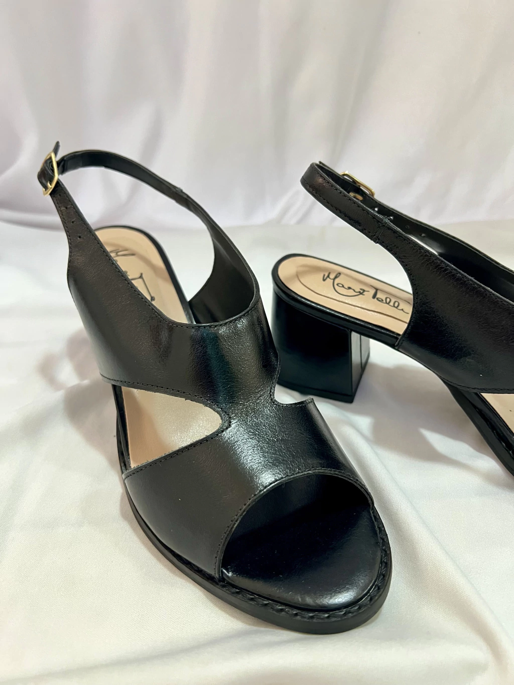 Sandália preta com recortes super diferenciados e modernos e acomoda muito bem o peito do pé e da estabilidade para andar. Com um salto de 6cm da mesma cor da sandália! Feita em couro super confortável, forma normal, recomendamos comprar seu número de costume. Disponível do 34 ao 40